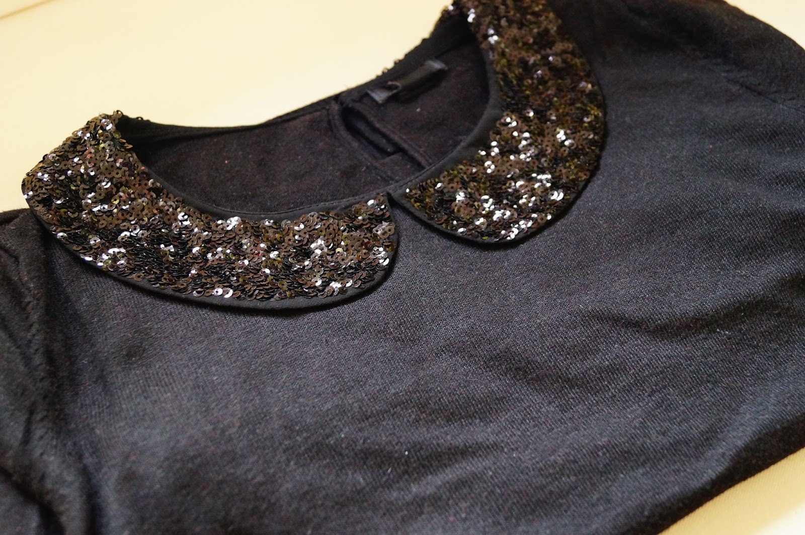 Und mein zweiter Fashionfavorit ist dieser schwarze Pulli mit Paillettenkragen von H&M. Leider ist er von vor 2 Jahren, aber eventuell findet man ihn ja auf Kleiderkreisel oder so. An sich ein schlichter Pulli, der durch den Kragen aber total zum Hingucker wird. Ich finde auch, er eignet sich sowohl für den Alltag als auch um schick Essen zu gehen oder feiern zu gehen.